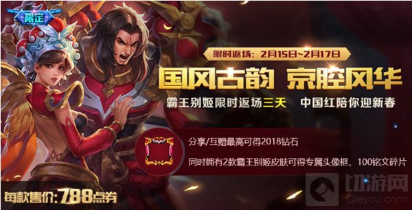 国风古韵,京腔风华,王者峡谷最值得典藏的CP皮肤霸王别姬限时返场,中国红陪您守岁迎新年。