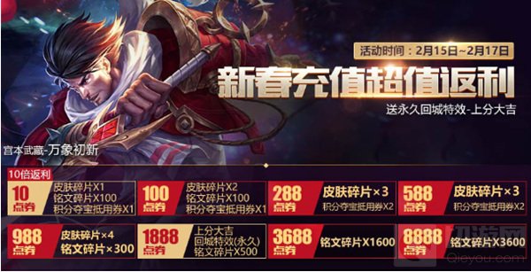 新春充值超级返利活动开启,最高可达10倍返利,累计充值1888点券还可获赠“上分大吉”回城特效(永久),祝您新的一年,福气旺旺,上分旺旺!~