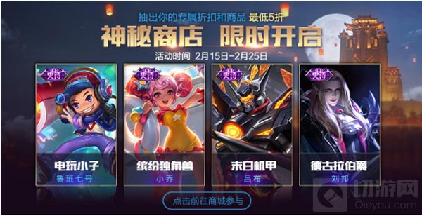 除夕0点开启神秘商店,最低可达5折,30款热门英雄皮肤任性选购!~