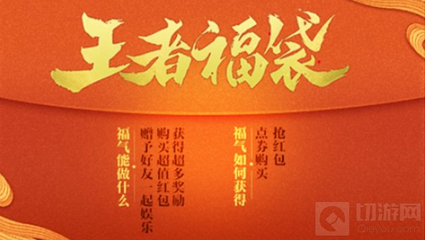 新年新福气,领取福袋过大年!王者为您和好友们精心准备的【王者福袋活动】已上线,快来与好友一起共享福气,为新的一年攒足好运气吧!(福气可以用来兑换各种永久英雄、皮肤福袋,也可以用来发给好友一起积攒好运哦~)