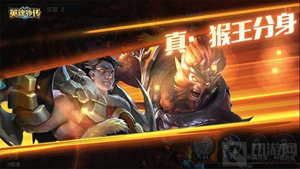 例如超人气红色武将孙悟空,就深度还原了其在英魂之刃中的“猴王分身”“如意金箍棒”等秒杀全场的技能,同时创新加入了与羁绊英雄合体释放的合击技能“真·猴王分身”,电影级镜头视效打造炫酷裂屏效果