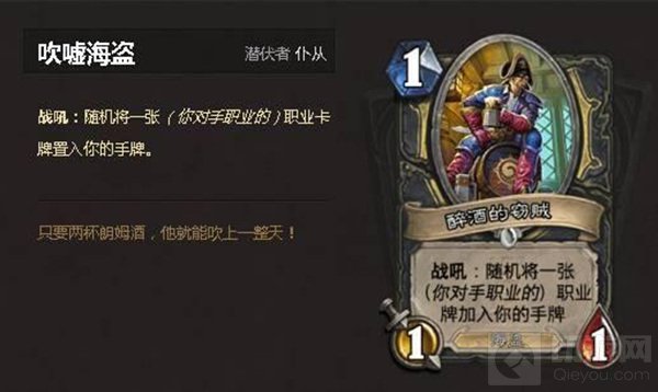 在过去海盗盛行的版本,吹嘘海盗绝对是盗贼必带的卡牌,既能补充手牌又能触发帕奇斯特效,收益自然不言而喻,兼具娱乐与实用的一费随从,深受广大盗贼玩家的喜爱。