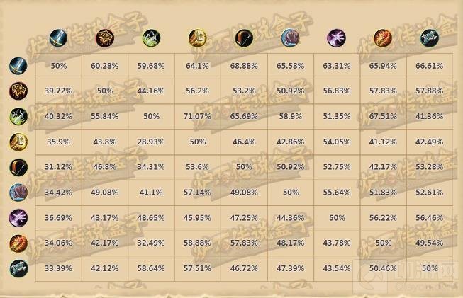 这里值得一提的是胜率方面萨满超过了盗贼,虽然排名还是很靠后,但是起码倒数一二的位置让给战士和盗贼了。总之这次补丁对盗贼来说还是很致命的。