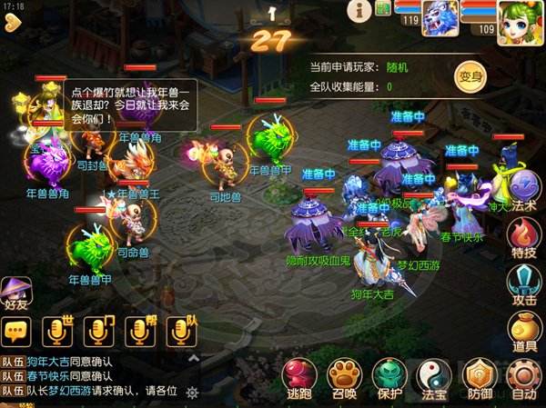 在刚刚过去的新春活动中,玩家刚把捣乱的年兽给驱除了出去,转身又引来了年兽兽王的觊觎。2月22日~2月28日,等级≥40级的玩家只要3人或3人组队,就可以与年兽王一较高下。除了常规战斗方式外,玩家还能通过打破莹石晶源、使用冲击波、音波等特殊技能,压制年兽兽王,提高战斗胜率!