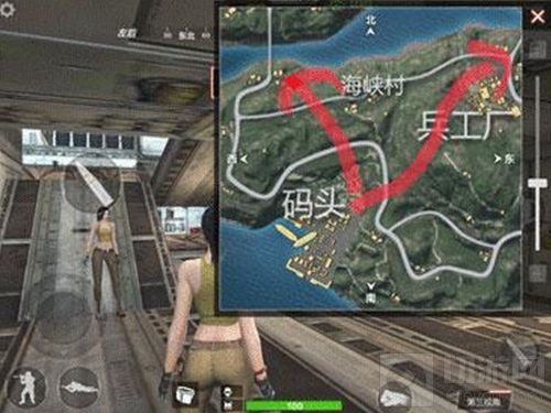 由于吉普车爬坡能力强,玩家可以依靠这一优势之处通过跨越山区前往俩个跨海大桥处优先选择前往兵工厂的路线,由于安全区刷新在中心附近的概率较大。当然具体情况还需要玩家自己决定路线的选择。