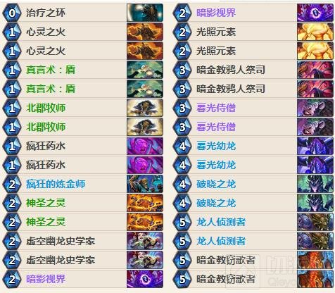 因为心火龙随从费用偏低,而且有疯狂和破晓龙等返场手段,对控制卡组早期站住场不难。对快攻更是不用考虑太多,用你所有手牌资源辅助你站住场吧,基本上站住就赢啦。所以不要吝啬翻倍,心火等等法术, 现在环境沉默太多,可以的话贴BUFF尽量分散投资。