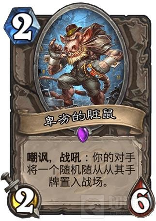 快攻玩家还很害怕被脏鼠这类随从把手牌生物拉上去,一来是因为被拉上去的大概率是小生物,被脏鼠完虐,毕竟是快攻,低费生物还是很多的,打不过脏鼠也是可以理解的。而脏鼠下去以后因为是嘲讽的缘故(快攻也很烦嘲讽这个属性),场上小生物都要撞上去,起码要死2个,非常不开心。二来是害怕一些关键卡被拉下去,比如火车王这类好解但属于高爆发的核心卡,拉下去只要2伤就能把火车王灭了,有时候直接劝退。