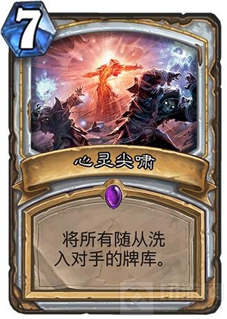 这张卡算是一张卡一类,它不仅包含aoe的清场属性,让快攻千年功德一朝散,而且比一般aoe强多了,一般aoe可能拿圣盾或者高血随从,或者亡语随从没有办法,但是心灵尖啸不管这些,全给我回牌库去,绝对清场。另一点就是关于牌库的污染问题了,所有卡洗回对手牌库,对于快攻就是噩梦,试想到7费这个局面,对手依然是一牌库的低费卡,每回合还是只抽一张,场面那是要崩的一塌糊涂的节奏啊!怎么和对手抗衡?原本还可以说有攻击频率优势,被心灵尖啸一波以后,不仅没有质量,连数量都没有了。