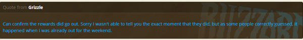 今天在论坛上,Grizzle,暴雪团队的一名成员,证实了3000包的奖励已经被领走。