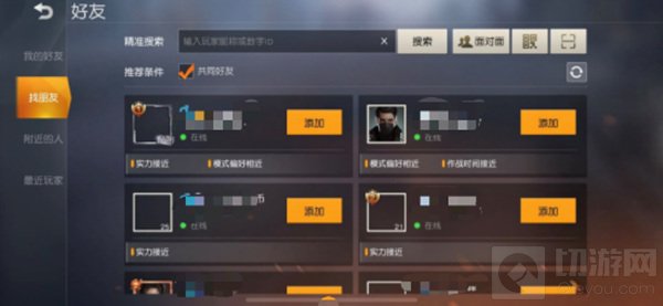 精准搜索只要在搜索框中输入想要添加的玩家昵称或数字ID便能搜索到该名玩家。同时玩家也可以通过共同好友推荐来添加好友,说不定一下子就能融入到一个势力庞大的团队。