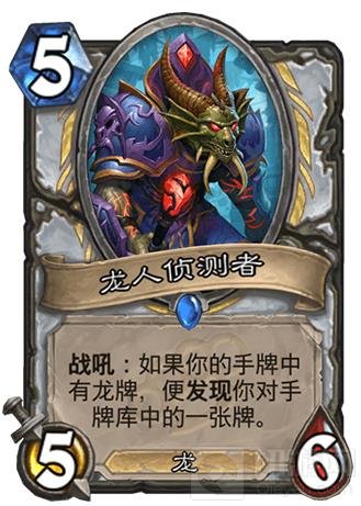 龙人侦测者—这应该是炉石中最强大的卡牌之一,在破晓之龙出现之前,龙人侦测者是各种龙牧卡组带的最主要的卡牌。龙人侦测者有着近乎完美的身材,并且如果手牌中有龙牌的话,还能发现你对手牌库中的一张卡牌。“发现”这个效果是很强大的,更何况是发现你对手的卡牌。对抗控制卡组,起手留龙人侦测者是比较安全的,因为你活到5费应该不成问题。