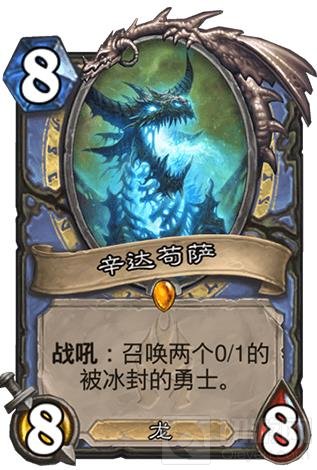 辛达苟萨:非常有分量的一张卡。首先配合恩佐斯,一共可以让你获得四张随机传说卡牌,大大增强后期能力,其次配合DK吉安娜的英雄技能你可以轻松刷到很多水元素帮你控场和回血。唯一需要注意的就是因为会获得卡牌到你手上,算好手牌数以免爆牌。