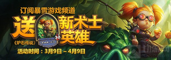 《炉石传说》全新术士英雄“奈姆希·灵沼”来了!3月9日-4月9日期间,只要在斗鱼、熊猫或网易CC直播平台上订阅(或关注)“暴雪游戏频道”,并绑定战网通行证,就可以免费将这个全新术士英雄加入你的收藏!