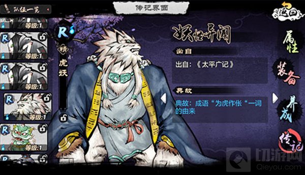 《太平广记》中曾记载“此是伥鬼,被虎所食之人也,为虎前呵道耳。”“伥”是中国志怪小说中特征最鲜明,行为方式也最复杂的鬼怪之一。它们生前为虎所噬,是死于非命的可怜之人,然而死后却甘愿为虎驱役,助虎害人。“为虎作伥”一词也成为千年来一应叛逆奸佞、蟊贼狗腿最具代表性的骂名。《妖怪正传》中的虎妖,身形庞大,虎爪生威,目露凶光,残忍的祸害误入山野的生灵。虎妖也在游戏的主线剧情中登场,引领伥鬼作威制祸,为江酌月一行带来了不小威胁。