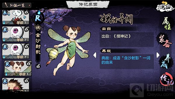 《搜神记》曾记载,相传古时候水里有一种虫,名叫蜮,有时也称作射卫或射影。它的形状像鳖,耳朵极其灵敏。当蜮在水边时,若是听见人、畜从它身边经过,就会用嘴含着细沙朝人或人倒映在水里的影子喷射,人畜如果被命中,便会染上怪疾。后世人将这个传说称为“含沙射影”,用来比喻用心险恶、手段卑劣的人暗中进行造谣诬蔑,打击或者陷害别人的行为。《妖怪正传》将这只小虫拟化为童妖,身负虫翼,体型幼小,总是气鼓鼓的小脸像在警告路人速速远离自己的领地,少了典故所言的那般阴戾,多了几分俏皮可爱。