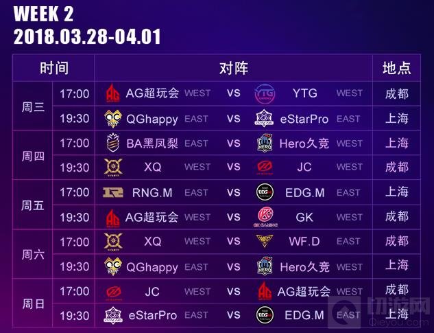 每天两场比赛(上海、成都各一场),由原先三局两胜制(BO3)更改为五局三胜制(BO5);