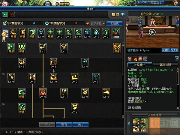 图中可以看出,我舍弃了银弹,浮空截击,点了一级回旋踢,因为在起源版本,X轴Y轴移动距离,整合到了花式枪术里面,你不点满浮空截击的情况下,你也可以像一个旋转的小陀螺,这里BBQ我点了十级,并学习了TP,这样可以抓取霸体情况下的怪哦,非常好用,百试百灵。至于死亡突袭,纯属本人强迫症,并不想留下任何一点SP。
