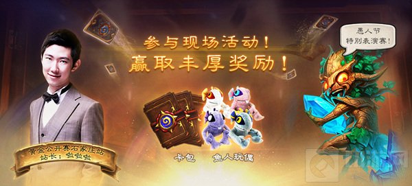 除了充满精彩对决的公开组,本次石家庄站还将设置愚人节特别表演赛。比赛将会邀请8名明星选手和人气主播,每个受邀选手还需要邀请1人组成2人小队,比赛将采用小队形式对抗。8支队伍将展开三职业BO3单败淘汰赛,每场比赛每个职业对战顺序固定且只可上场1次。需要特别注意的是,选手可以在自己回合根据判断禁止对手在接下来的一个回合中不能使用某张卡牌,同一张卡牌不能连续被限制。每赢得一个BO3,选手将获得2333元奖金,冠军将额外获得6666元奖金。