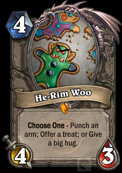 抉择:捶一记重拳;请一顿客;或者来一个大大的拥抱。 (卡画是tcg冬幕节特别卡,姜饼人)