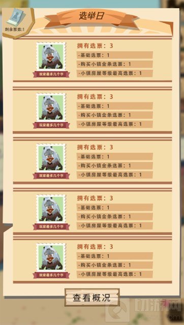 在3月版本更新后,镇长选举规则发生微调,原有选票获取规则不便,但当周小镇内房屋等级最高的玩家将额外获得一张选票,进一步提升了核心玩家对选举的影响力,想要当选镇长?不妨在聊天室中与核心玩家多多交流,争取他们的支持。