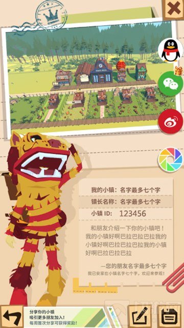 另一方面,推出小镇分享功能,所有镇民都可以通过包含有小镇ID和名称的分享图片将小镇推荐给自己的好友,而且还能利用微信或QQ直接分享,点击链接后即可直接加入小镇,便捷程度大大提升。