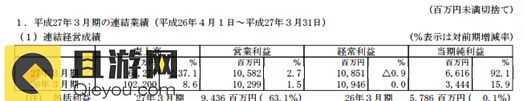 日本著名游戏厂商CAPCOM今日(5月7日)发布了最新的财报,数据显示CAPCOM在2015年度(2014年4月~2015年3月)营收642.77亿日元、同比下降37.1%,营业利润为105.82亿日元、同比下降0.9%,净利润为66.16亿日元、同比增长92.1%。(*汇率按照2015年5月7日15时100日元=5.2人民币 进行计算。)