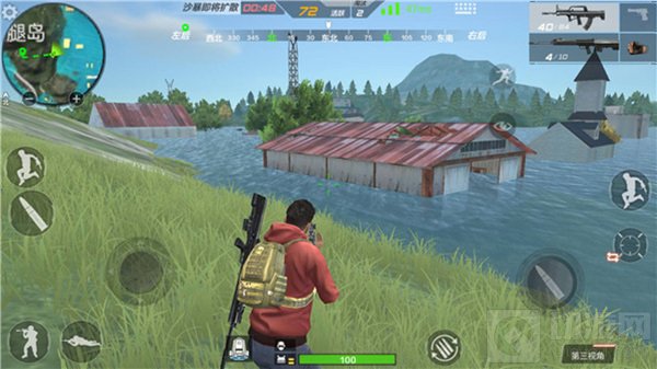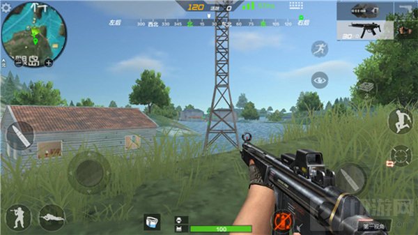 当我们在如图5所示的位置对东北侧的科学岛水域进行观察的时候,最好采用半蹲或者卧姿,利用周围仅有的几棵树木和草地进行隐蔽,最后还要提醒大家一点,在新版本中,新增加了海陆两栖装甲车,拥有水面作战能力,我们在陆地上的时候要注意躲避它们的攻击。