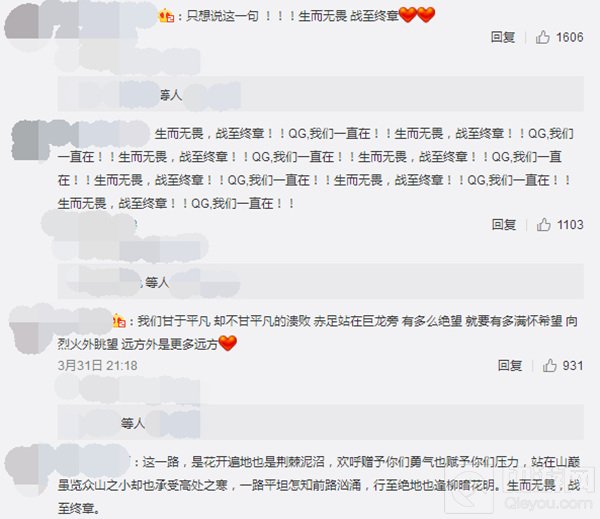 相信创造荣誉历史的他们一定会以一个全新的姿态再次回到我们的面前!凤凰涅槃,浴火重生,生而无畏,战至终章!QGhappy我们等你王者归来!