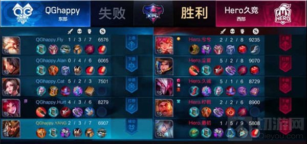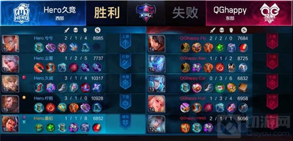 Game 3:Hero久竞蓝色方,QGhappy红色方