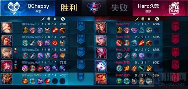 Game 4:QGhappy蓝色方,Hero久竞红色方