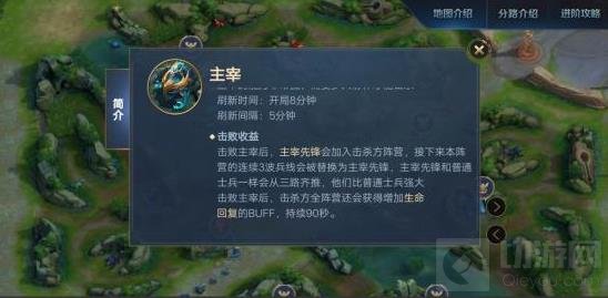 主宰会在游戏开始后8分钟刷新,击杀后暗影主宰后,会有3波主宰先锋替代兵线,主宰先锋相比兵线来说推塔能力更强。击杀暗影主宰队伍还能够获得一个持续回复生命值和蓝量的buff效果。