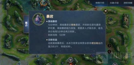 游戏10分钟时暴君会进化为黑暗暴君,黑暗暴君的作用比暴击要强的多,击杀难度也会大很多。击杀黑暗暴君后所有队友都会获得一个输出buff,增加物理和法术输出,不过只有90秒的时间,如果获得buff后背击杀,buff也会消失。