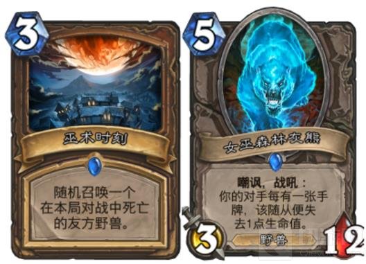 灰熊是这套牌最可能触发亡语的野兽,直接复活是不会触发战吼的,那么5费3/12的身材非常的可怕。虽然哈多诺克斯也是野兽但是哈多都死过了你还不能战胜对手吗?如果复活了哈多我们还可以再次触发这样的亡语,何乐而不为呢?