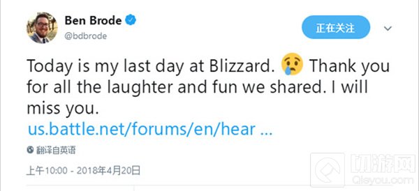 凌晨BB发了一条推特,这条不是又爆新版本的料也不是神奇的Rap,而是表示自己最后一天在暴雪上班了,没错,BB离职了,下面为BB在美服论坛发的一条离职信,大家看看吧。