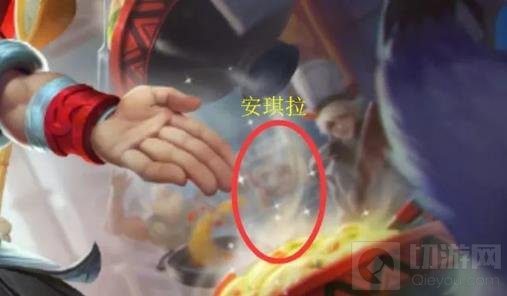 老夫子功夫老勺这款皮肤拥有很多彩蛋,原画中出现的英雄多达十个,但如果不仔细看,可能漏掉安琪拉。从左至右,有评委席的奕星、李元芳、公孙离,有二楼喝酒的剑仙李白,有正中央的助手小乔和主厨老夫子,有右侧等待品尝美食的程咬金、梦奇和安琪拉,还有一个也喜欢做菜的百里守约。