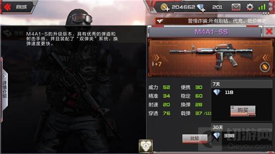 首先登场的是M4A1-SS,这把枪也是可以通过换购获得的,低级别的M4A1加上一些钻石即可获得这把武器,另外,因为这把M4A1装备了双弹夹系统,所以在带弹量和换弹速度方面,在紫色级别的M4A1中都比较出众,也正是因为它的这些优点,M4A1-SS有着十分优秀的续航能力,另外,枪械加装了消音器,而且还对弹道做了优化,以上这些改变,让这把M4A1有着更好的射击手感,在射击的时候,枪口抬升幅度小,准星回缩速度快,综上,这把枪很好上手。此外,这把枪在紫色级别的M4A1中是最低的,这也是他的诱惑力之一。