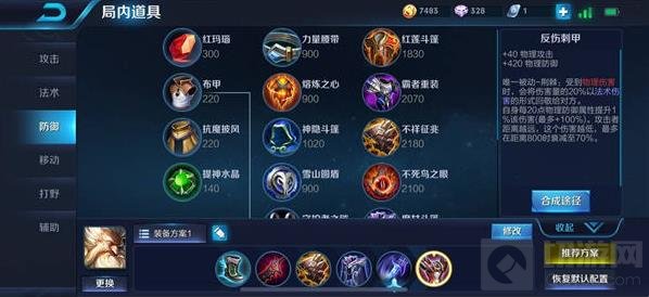 六神装推荐:抵抗之靴、末世、不祥征兆、魔女斗篷、纯净苍穹、反伤刺甲