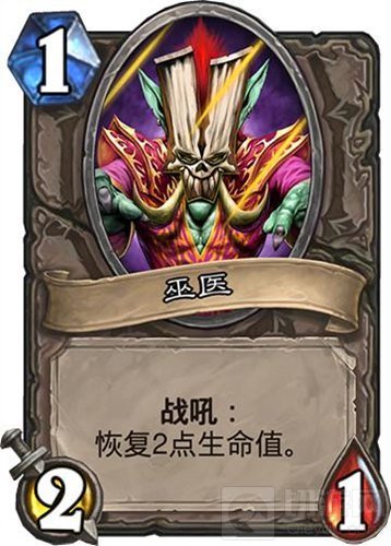 巫医是这套卡组的一个治疗牌,本身也有2点攻击,而他的治疗效果不仅可以回复血量而且还可以和其他卡牌相配合。