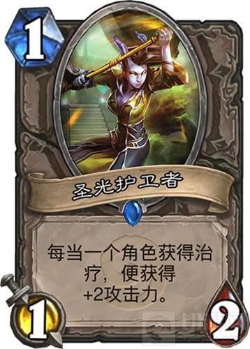 这张牌的恢复效果就更大了,不仅可以恢复随从的血量,而且还能恢复英雄的,一下子就可以把圣光护卫者养起来。