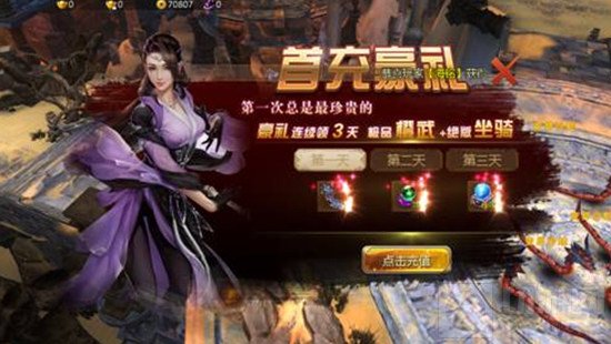 刚开服这几天充值非常划算,有各种折扣,奖励回馈也非常给力。小编觉得首充奖励的力度最为突出,送的竟然是橙色武器还有绝版坐骑了。