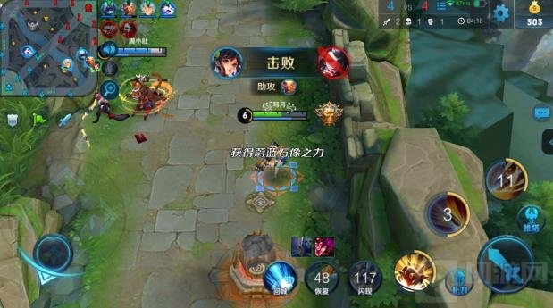 6、在团战中也要注意走位防止被敌方消耗,可使用一技能来躲避敌方技能,而且不要忘了召唤师技能,必要时也可以救孙尚香一命。