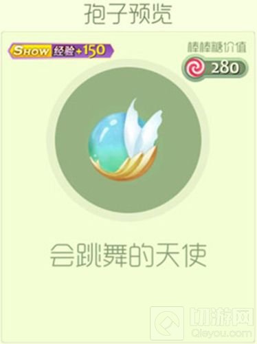 会跳舞的天使孢子外形看上去想一颗钻石镶嵌在金上面,还带着一双白色的翅膀,非常像一颗宝石,可以增加150点Show经验!