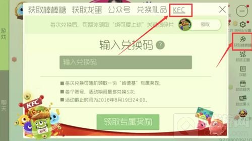 闪卡背后印有奖品兑换码,打开游戏“获取棒棒糖-KFC”输入闪卡兑换码即可参与抽奖得定制游戏礼包,100%中奖!残影、炫光、光环、孢子、关键字、金蘑菇、棒棒糖等多样奖品随机掉落哦。