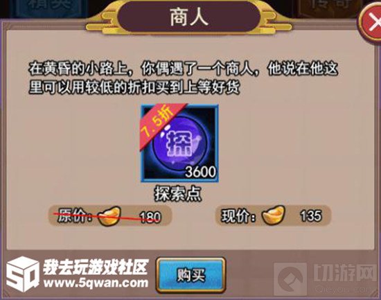 除了“一键驱散”的方法外,和商人交易也能让主公快速获得探索点,不过在交易之前,主公需要先触发相应的商人事件。主公可以在驱散迷雾后直接去触发商人事件,如果能够触发到“探索点折扣”,就能以非常低的价格购买下大量探索点。这个方法比起探索幻境更加简单,而且效率更高。
