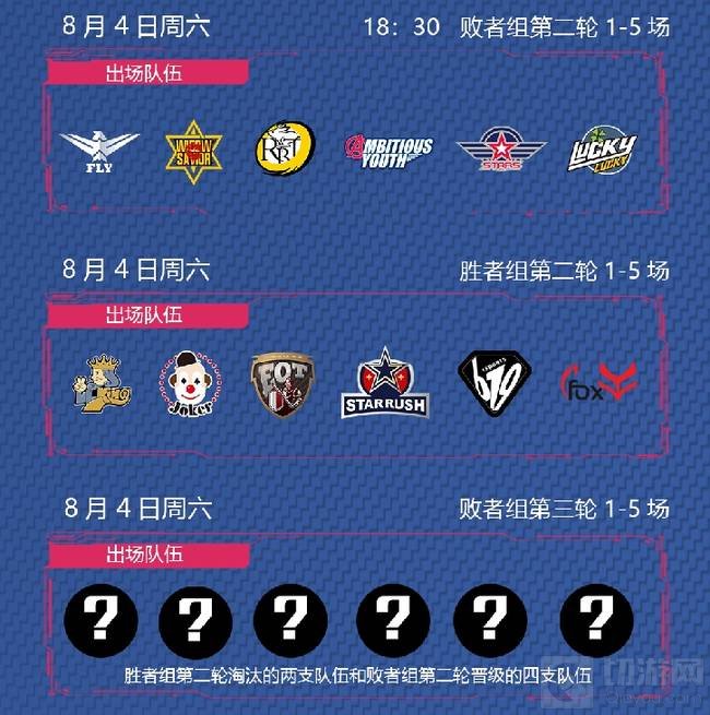 今晚,胜者组的VLK、JOK、EOT、SR、619、FOX6支战队抢夺总决赛的四张门票,而不幸落败的两支战队将和FLY、TWS、RBT、AY、STS、LK中胜利的四支战队抢夺最后的两张门票。