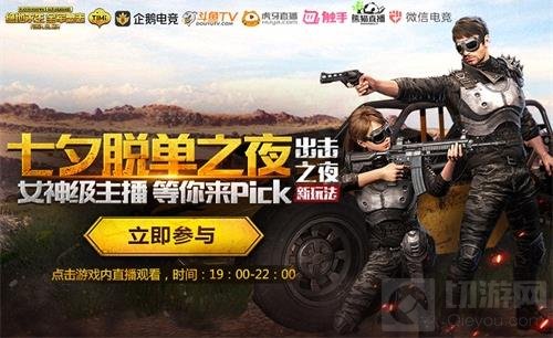 不同于以往的吃鸡类活动,此次“全军出击美女主播七夕出击之夜”主题活动主打营造主播CP阵容,明星种子队伍均为2男2女的构成阵容,而专区直播队伍也要求至少有一名女神主播。CP阵容的打造在增加全军美女主播的曝光度的同时,也增加了趣味媒体话题。活动将直接云集各大直播平台的女神小姐姐,战场玫瑰一起炫丽开放,所有女神集体出击,带你吃鸡。