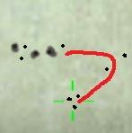 从放大后的弹道,可以明显看出,M60-A的速点还是较为精准的。点射的弹道基本在十字准心内,但是如果点射频率过快的话子弹离散程度是非常大的。因此在这里我不推荐大家使用此武器和使用步枪一样——中近距离使用速点,因为此武器速点过快的话精准度不高,而速点过慢的话肯定打不过步枪。