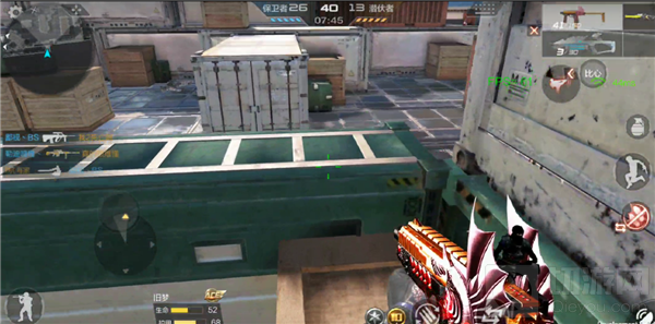 站在集装箱上方的话,各位小伙伴的视野相比之前扩大了一倍,下方敌人的动向都能够尽收眼底。在这里战斗的话就推荐各位小伙伴使用狙击枪了,因为彼此之间的距离较远,在这种情况下,往往狙击枪才能发挥最大程度上的威力。不过在这里攻击的时候也一定要小心,否则是很容易被当成活靶子的。