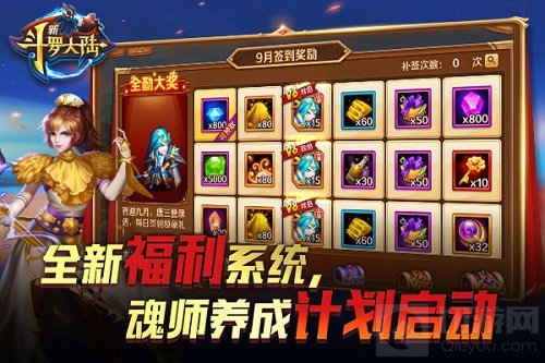 在此次新版本上线之际,《新斗罗大陆》将启动玩家新福利计划,月度签到模式上线。月度签奖励将围绕某主题活动展开,除了每天签到都可获得丰厚奖励外还有累计签到奖励和vip双倍奖励;魂师们还可通过充值和每日任务里最大活跃度的积分宝箱获得补签次数,补签次数每月清零。