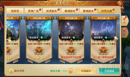 过五关,斩六将!如果你想要挑战自己的能力极限,来《百战天下》单人副本“洪荒古殿”那就没错了!此副本全天为玩家们开放,达到150级以上的强者就有资格进入其中挑战。“莽荒古殿”共分为10层,每天有两次挑战机会,道友们需要从古殿一层开始逐步推进,每通关一层,副本的难度也将大大提升!